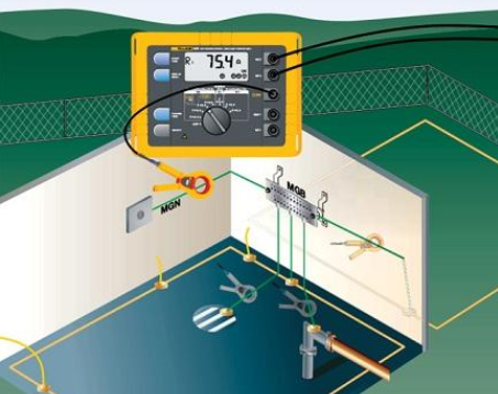 条件:必须有已知接地良好的地,如PEN等,所测量的结果是被测地和已知地的电阻和。假如已知地远小于被测地的电阻,测量结果可以作为被测地的结果。