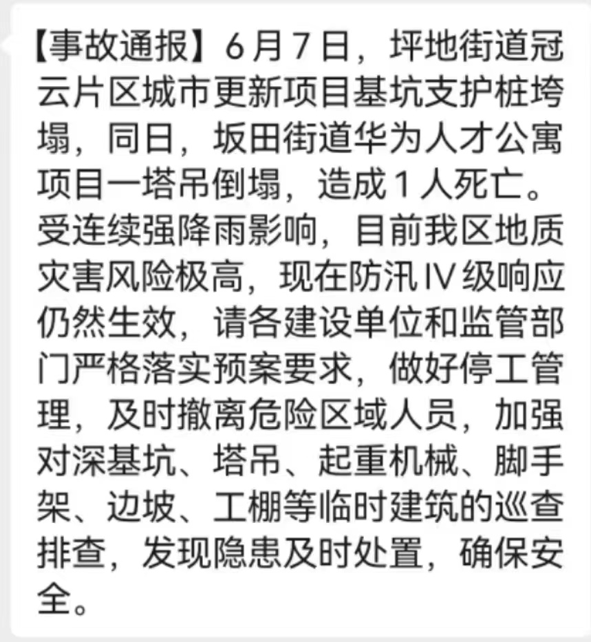 admin 行业动态 2022-06-09 华为人才公寓项目发生塔吊倒塌!女塔司死亡! 中建*局坂田街道华为人才公寓项目一塔吊倒塌,造成1人死亡!一定要重视安全!切不可只是嘴上说说! 一组动图告诉你 塔吊倒塌瞬间有多可怕 塔式起重机常见的事故包括脱钩、钢丝绳折断、安全防护装置缺乏或失灵、吊物坠落、起重机倾翻和碰撞致伤等事故类型。 那么该如何有效避免塔吊事故发生? 请在后台主题设置-主题授权-激活RiPro主题的正版授权,授权购买:RiTheme官网 RIPRO主题是一个优秀的主题,极致后台体验,无插件,集成会员系统工程U » 华为人才公寓项目发生塔吊倒塌!女塔司死亡!