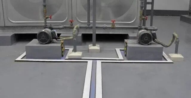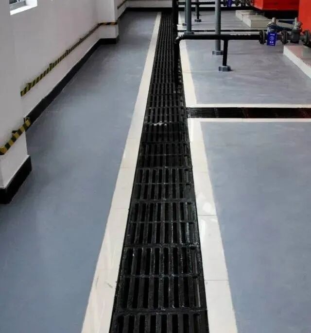 设备四周U-PVC排水沟先冲筋埋设,再进行地面面层施工。U-PVC管预埋时与混凝土接触面必须预先打磨,确保施工后不空鼓。